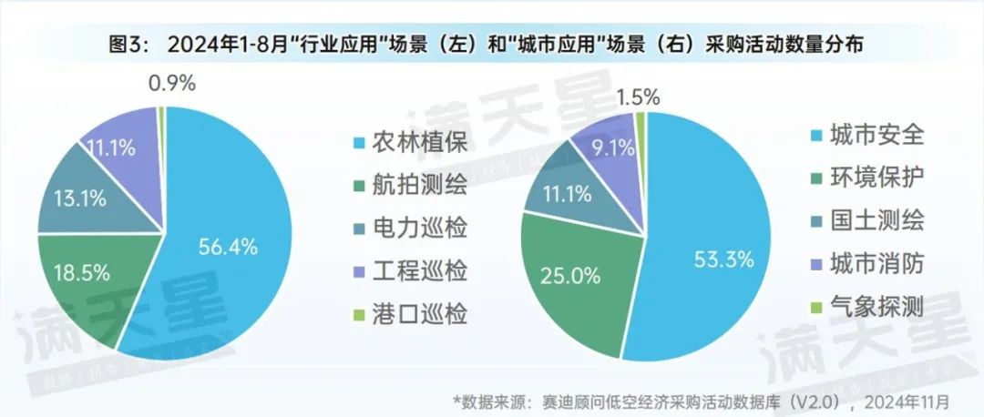 圖3:2024年1-8月“行業應用”場景(左)和“城市應用”場景(右)采購活動數量分布