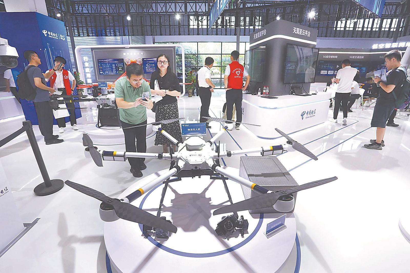 9月6日,蕪湖市弋江區(qū)蕪湖宜居國際博覽中心內(nèi),在“2024低空經(jīng)濟發(fā)展大會”新質(zhì)生產(chǎn)力創(chuàng)新成果展上,觀眾參觀展覽。(王玉實攝)