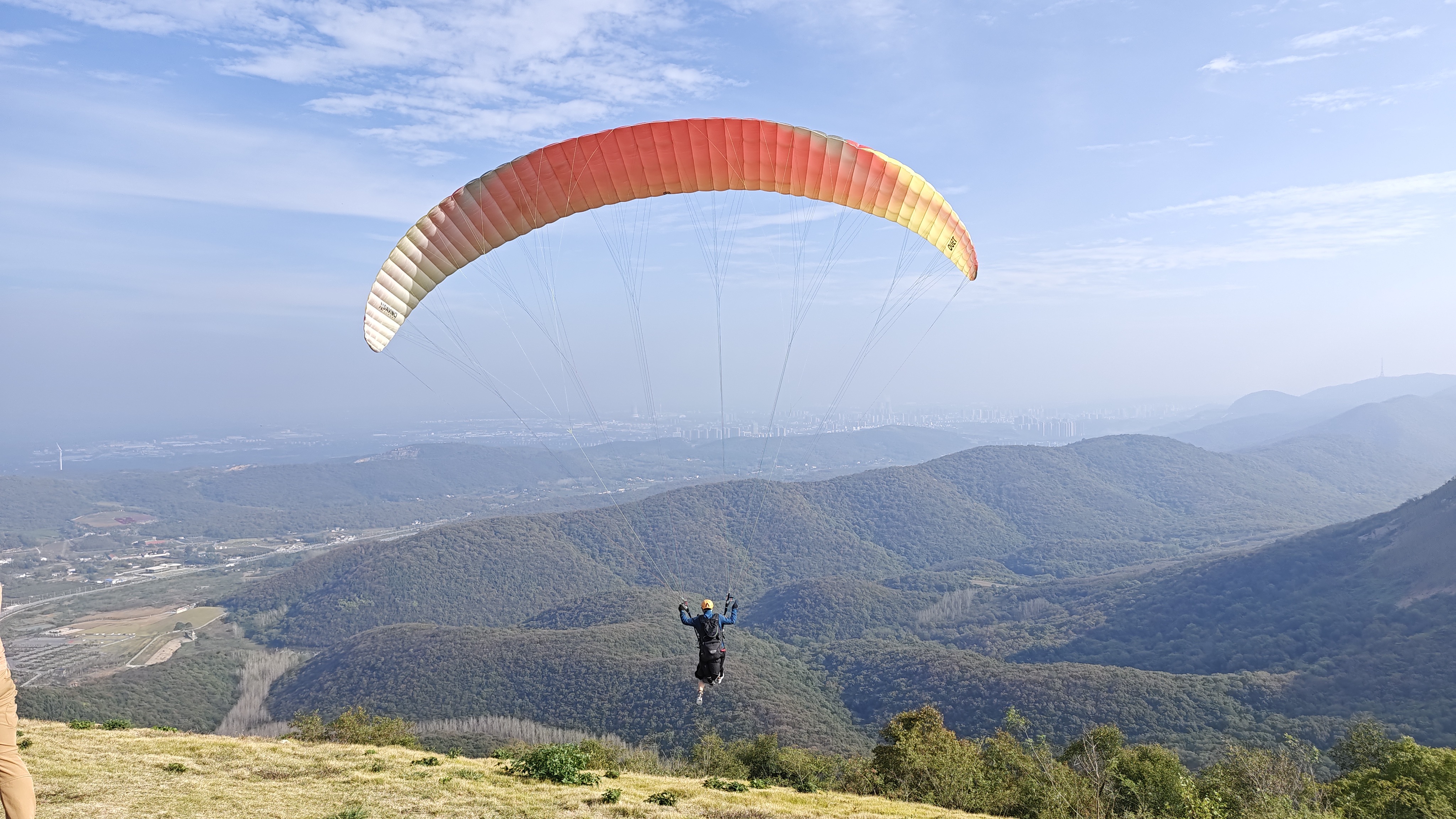 荊門東寶圣境山生態旅游區向游客開放滑翔傘旅游,吸引了北上廣深的游客。 澎湃新聞記者 王玨瑋 圖