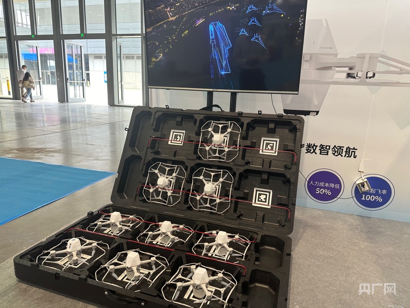 第三代箱內起降編隊無人機DMDv3(央廣網記者 唐晨 攝)