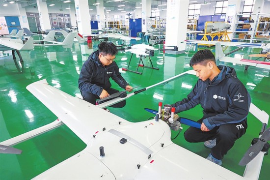 3月21日,位于安陽無人機產業園的安陽蜂巢智能裝備有限公司生產車間,技術人員正在檢測無人機產品。本報記者 聶冬晗 攝