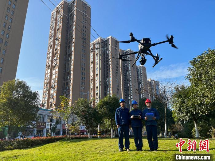 圖為國網宜春供電公司城南供電中心工作人員正在開展無人機巡檢作業。胡志鵬 攝