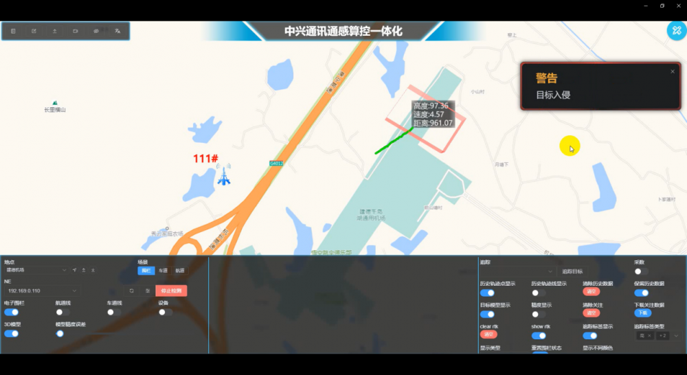 “我們采用128TR自發(fā)自收的5G-A通感一體化基站,通過超大規(guī)模陣列、連續(xù)波加脈沖波等領先技術完成對建德航空小鎮(zhèn)通用機場區(qū)域的全天候感知監(jiān)測,實現對機場直升機150米最高飛行高度和9m/s最大飛行速度的全程精準感知和實時上報。”浙江移動工作人員介紹道:“同時在指定區(qū)域構建禁飛區(qū)電子圍欄,只要有非法無人機進入電子圍欄就能被感知,并發(fā)出告警,保障航空小鎮(zhèn)空域安全。”