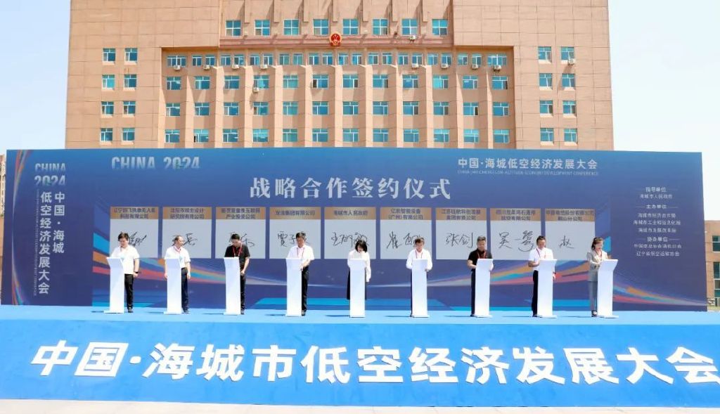楊野宣讀《海城低空經濟若干產業政策》《海城市低空經濟高質量發展實施方案》;市委常委、副市長王麗敏代表海城市與億航智能設備(廣州)有限公司、龍浩集團有限公司、江蘇硅航科創發展集團有限公司、南京度量衡互聯網產業投資公司、四川龍昊鴻石通用航空有限公司、沈陽市規劃設計研究院有限公司、中國電信股份有限公司鞍山分公司、遼寧國飛執象無人機科技有限公司簽訂戰略合作協議。