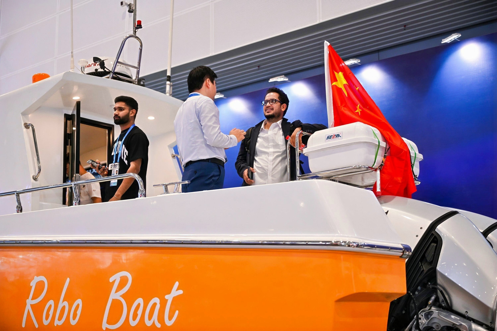 中創(chuàng)海洋展臺(tái)展示了新能源在水上交通領(lǐng)域的創(chuàng)新應(yīng)用,首艘中國(guó)自主研發(fā)的Robo Boat休閑用游艇在數(shù)貿(mào)會(huì)首發(fā)亮相。該應(yīng)用結(jié)合了多項(xiàng)人工智能技術(shù),醇?xì)鋭?dòng)力和新材料科技應(yīng)用,其搭載的AI系統(tǒng)已經(jīng)具備定向航行、無(wú)人駕駛等功能,還可以通過(guò)雷達(dá)和AIS采集信息,利用多重算法實(shí)現(xiàn)船舶的自動(dòng)避碰。下一步,Robo Boat將會(huì)投入“水上的士”智能駕駛出租服務(wù),為未來(lái)出行提供全新解法。