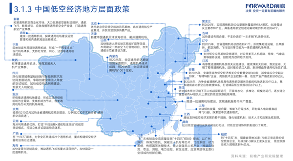 2024年以來,全國已有超30+省市將低空經濟寫進了政府工作報告,將發展低空經濟列入了本省份的發展規劃或工作任務,更有多個省市已經發布或正在研究制定本地發展低空經濟的支持政策措施。四川、海南、湖南、江西、安徽等省份在低空空域管理改革試點方面取得了一定成效,為低空經濟的發展創造了有利條件。