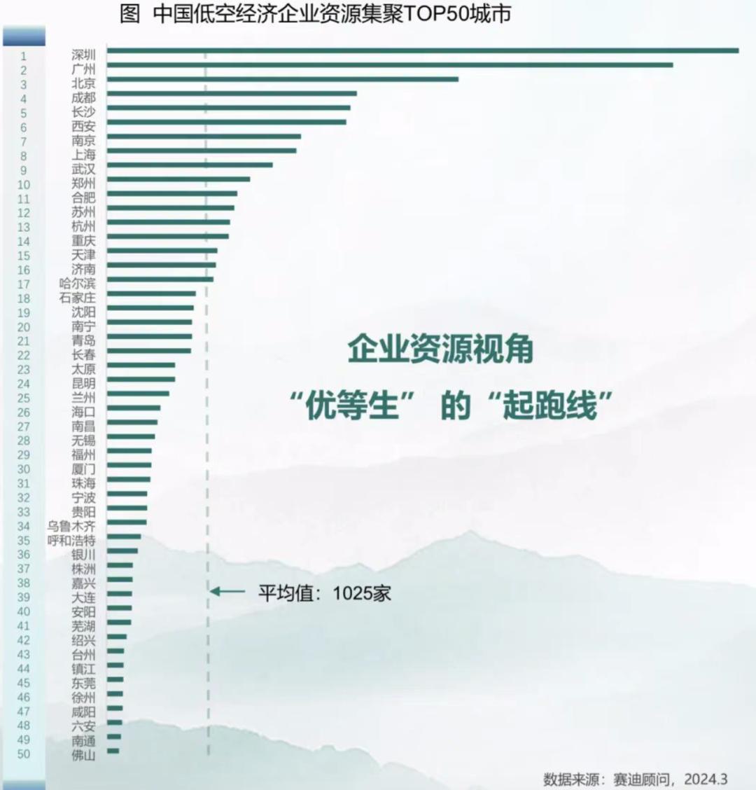 如從企業端看,根據《中國低空經濟發展研究報告(2024)》,深圳、廣州、北京、成都、長沙的低空經濟企業數量位居全國前五。