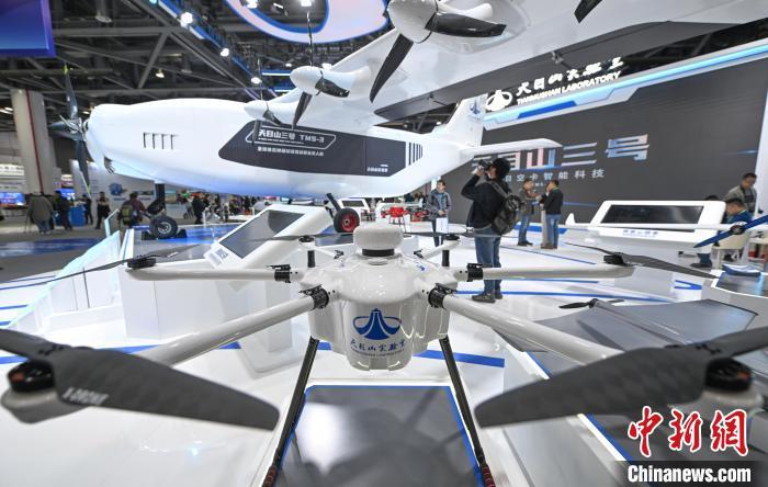 12月5日,垂起固定翼子母無人機吸引參觀者,該無人機可攜帶1至6架子平臺執行任務。當日,第六屆浙江國際智慧交通產業博覽會在浙江杭州開幕,以“翱翔天際 未來已來”為主題的航空產業(低空經濟)館亮相,展出了涵蓋低空經濟、航空制造、航空服務、航空科技、航空物流等領域的167件展品,吸引參觀者。中新社記者 王剛 攝