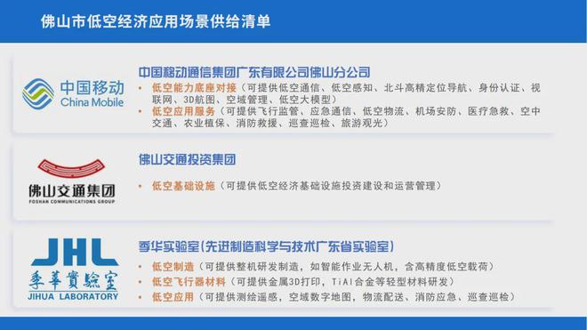 據了解,佛山市低空經濟發展協會是在佛山市人民政府指導下,由中國移動廣東公司佛山分公司、佛山市交通投資集團有限公司、季華實驗室等10家單位牽頭成立,并由中國移動廣東公司佛山分公司擔任第一屆會長單位。