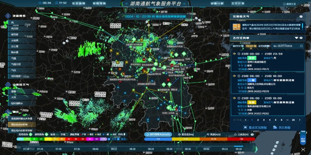 在湖南省通用航空服務中心長沙飛行服務站,省通航公司與省氣象局合作研發的通航氣象服務平臺已接入監控指揮中心平臺。省氣象服務中心專業氣象臺副臺長謝睿恒表示,依托通航氣象服務平臺,湖南氣象及通航部門可面向應急救援、空中游覽等低空飛行場景,為106家通航企業、20家機場提供服務。自2022年9月該平臺投入使用以來,共服務22萬余個飛行架次。今年,在湖南岳陽地區堤防決口處置中,氣象部門依托該平臺為54架次搶險救災飛行提供保障,共助力運送人員49人次,物資9噸。