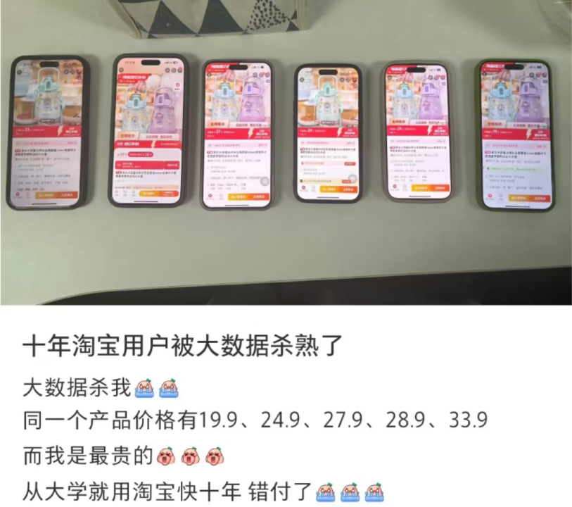 大數據殺熟的風,終于吹向了自己。她點開社交媒體,才發現看人下菜碟這件事,幾乎沒有任何一個會員能逃過。同樣一件普普通通的帶logoT恤,有人的折后價格86.94,有人券后價格75.09,精確到小數點的標價,把算計寫到了極致。