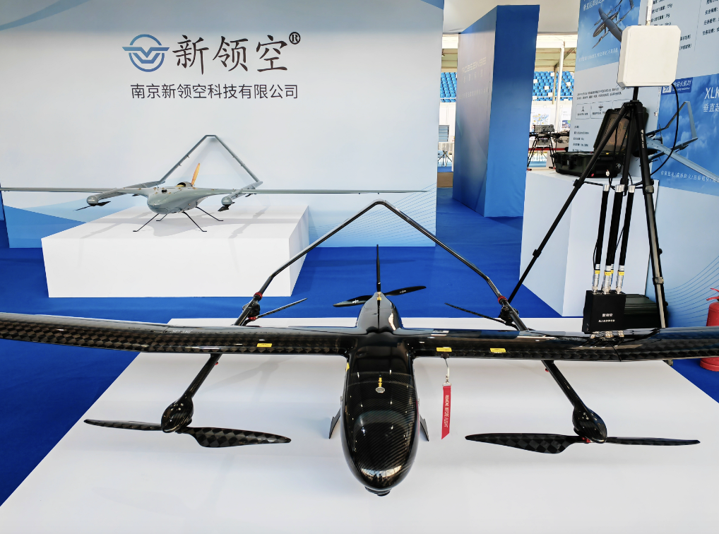 南京新領空科技有限公司展示的垂直起降固定翼飛機。新華社記者王聿昊 攝