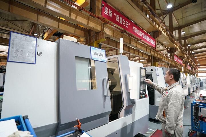 通用技術集團沈陽機床的工人在車間工作(2023年2月14日攝)。新華社記者 潘昱龍 攝