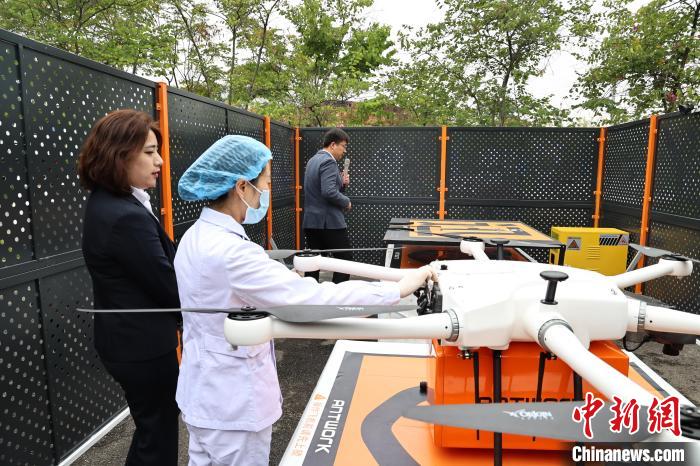 中新網成都10月30日電 (韓金雨)10月30日上午11時,一架滿載醫療器械的無人機從成都市龍泉驛區第一人民醫院起飛,按照既定航線飛往龍泉驛區大面街道衛生院。此時,另一架載有龍泉驛區山泉鎮衛生院的待檢樣本的無人機,在經過11分鐘飛行后,緩緩降落在成都市龍泉驛區第一人民醫院無人機樞紐站,醫護人員第一時間將取出的樣本送往臨床醫學檢驗中心進行集中快速檢測。這是成都首批縣域常態化醫療物資配送航線的正式首航,標志著成都市向醫療物資“低空速配”時代又邁進了一大步。