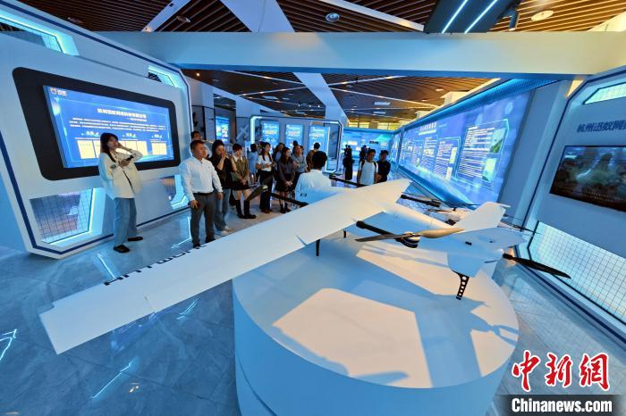 11月12日,福建省福州市高新區“榕創匯”無人機(系統)孵化器里的各種低空應用型無人機吸引了許多人的目光。隨著低空經濟蓬勃發展,福州高新區大力發展無人機產業,已經引進蜂巢航宇、穿越醫療、福州中岳航空、空間矩陣、自由飛躍、迅蟻科技等無人機研發企業,產業鏈上下游企業配套完善。圖為具備掛載能力可垂直起降的固定翼無人機。中新社記者 王東明 攝