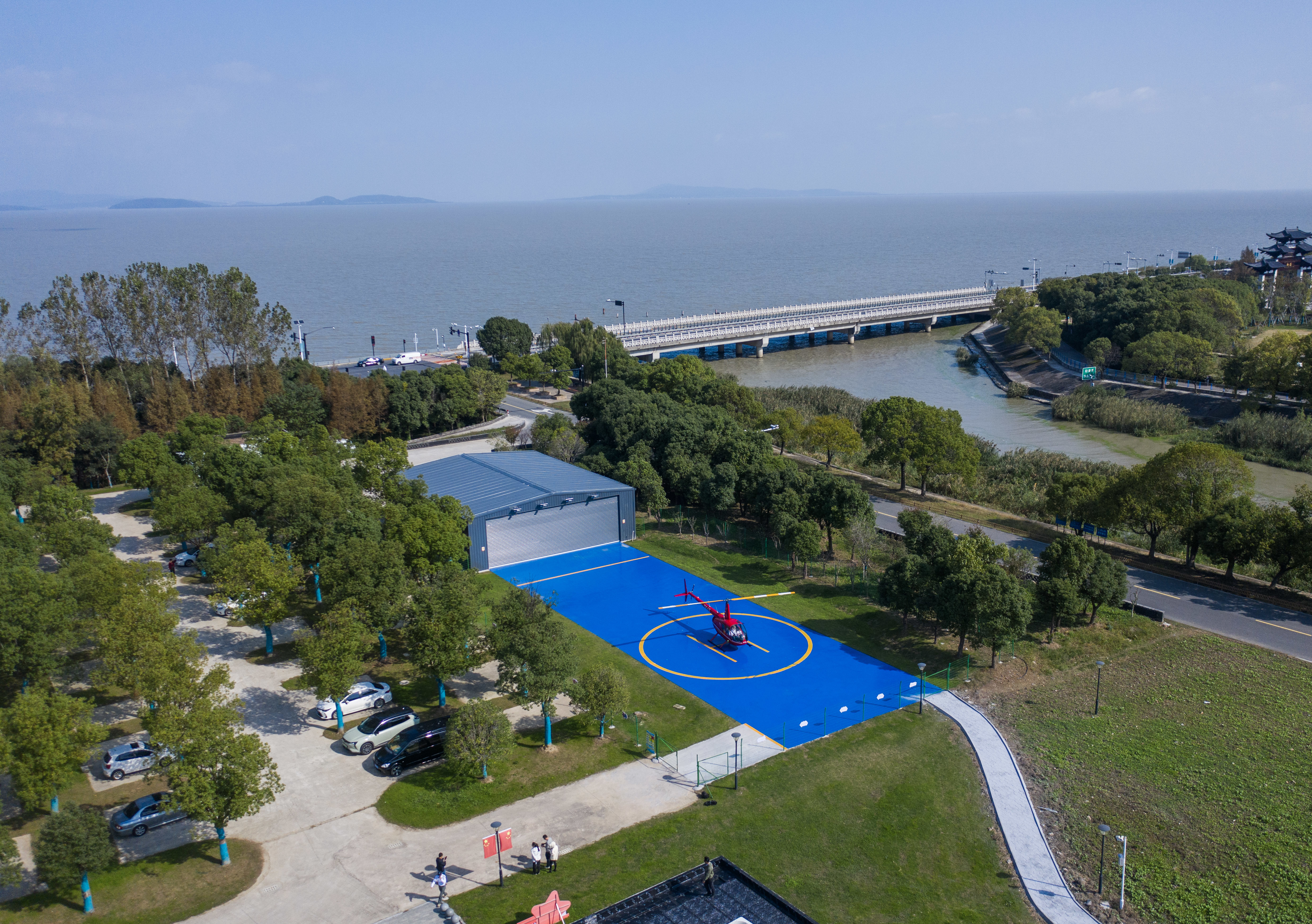 11月5日,空中俯瞰毗鄰太湖的湖州米旗通航直升機飛行基地(無人機照片)。新華社記者 徐昱 攝