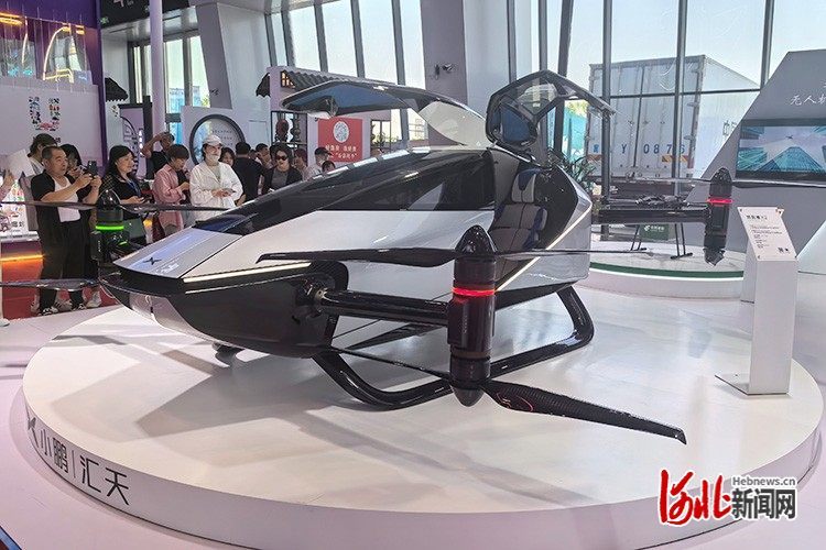 圖為本屆廊坊經(jīng)洽會廣東匯天航空航天科技有限公司展出的一體式飛行汽車旅航者 X2。姚恒嘉 攝