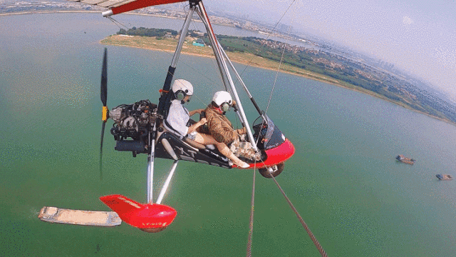 △市民游客在硯洲島航空運動旅游營地體驗體驗飛行。肇慶市融媒體中心記者 梁小明 攝