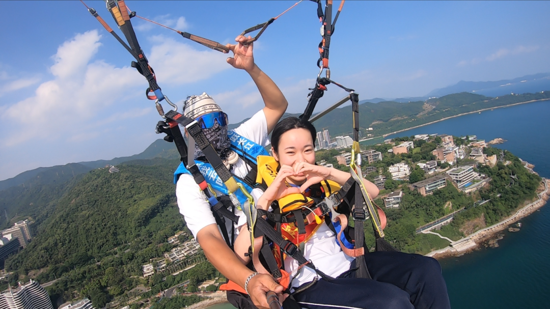 在專(zhuān)業(yè)教練的指導(dǎo)下體驗(yàn)了滑翔傘飛行,鹽田高級(jí)中學(xué)學(xué)生李睿激動(dòng)表示:“項(xiàng)目比較刺激,上升速度很快,一下子就把我拉到了高空,然后降落的時(shí)候會(huì)有一點(diǎn)失重感,我覺(jué)得非常有趣!”