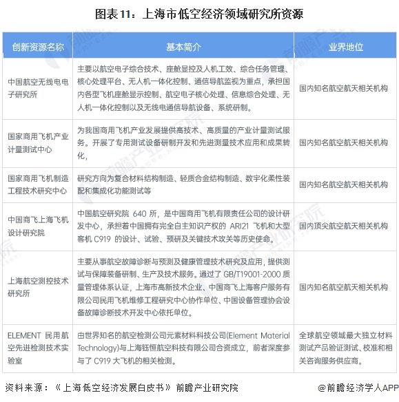 在科研院所方面,上海集聚了民用航空領域眾多的國內高能級平臺,包括飛機總體和氣動、系統工程、結構強度、動力能源、電氣系統、飛控系統、航電系統、試飛測試等領域形成了扎實的技術積累,為低空經濟的發展奠定良好基礎。