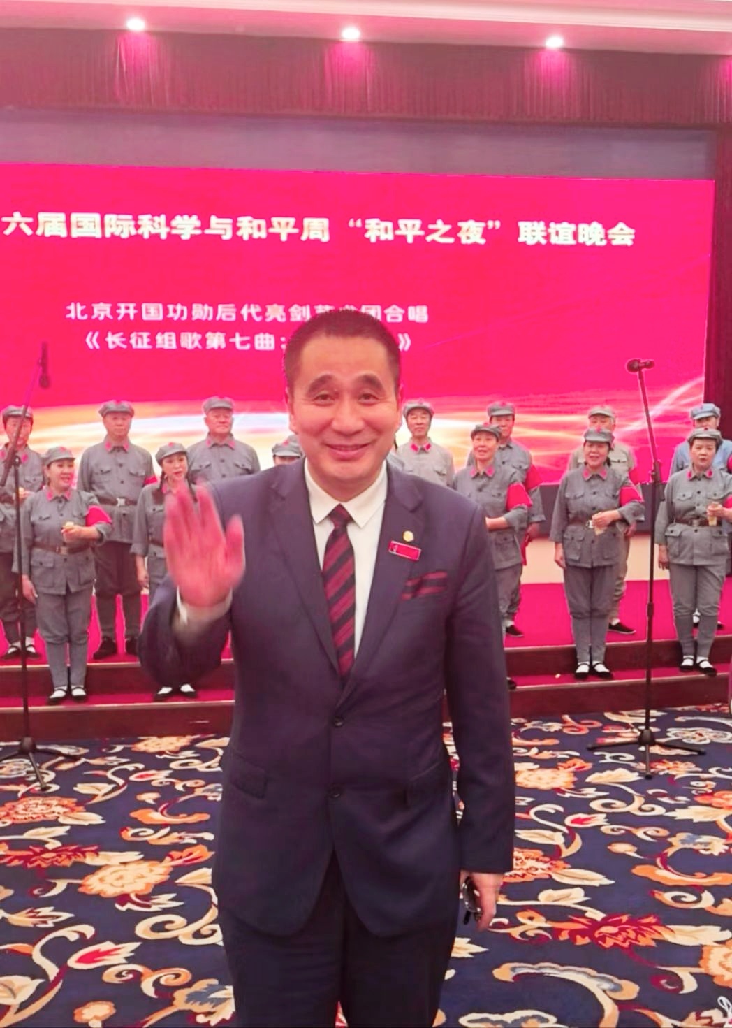 華國(guó)中代表中聯(lián)國(guó)興書畫院向國(guó)際科學(xué)與和平周中國(guó)組委會(huì)贈(zèng)送作品并發(fā)表精彩致詞:科學(xué)、和平、發(fā)展是人類社會(huì)的永恒主題,是人類文明進(jìn)步繁榮的基礎(chǔ)。和平、和睦、和諧是中華民族5000多年來一直追求和傳承的理念。中華民族是愛好和平的民族。和平、和合、和睦、和諧的追求深深植根于中華民族的精神世界之中,深深溶化在中國(guó)人民的血脈之中。讓我們共同胸懷為人類謀進(jìn)步的光榮偉大夢(mèng)想,腳踏和平發(fā)展的人間正道,吸吮綿延不斷的中華文明,中華民族同世界上一切愛好和平的民族攜手共進(jìn),手拉手,心連心。向著人類命運(yùn)共同體的光明大道闊步前行。