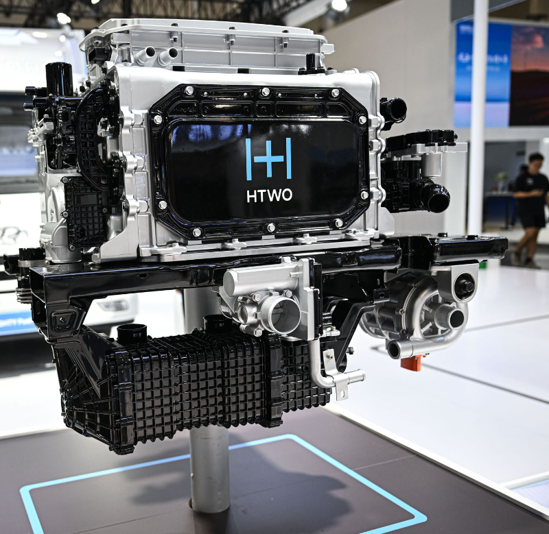 圖為在現代汽車集團展臺拍攝的氫燃料電池系統。新華社記者 蒲曉旭 攝