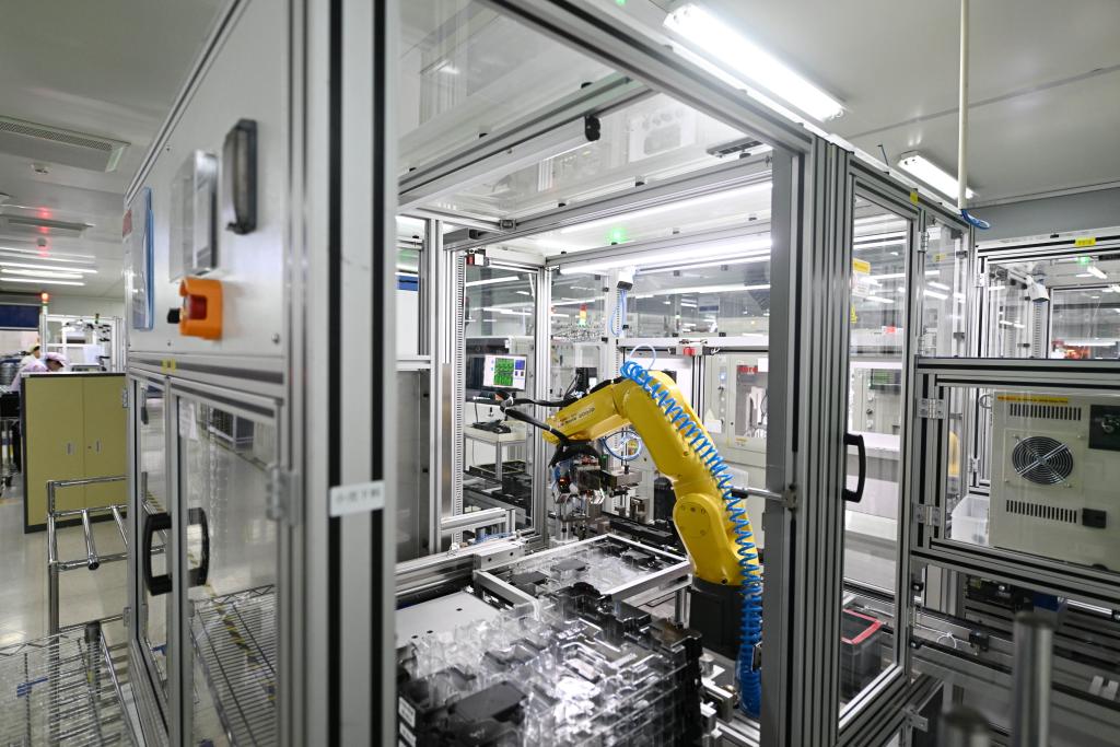 北京經緯恒潤科技股份有限公司天津工廠車間內的自動化生產線。(新華社記者 李然 攝)