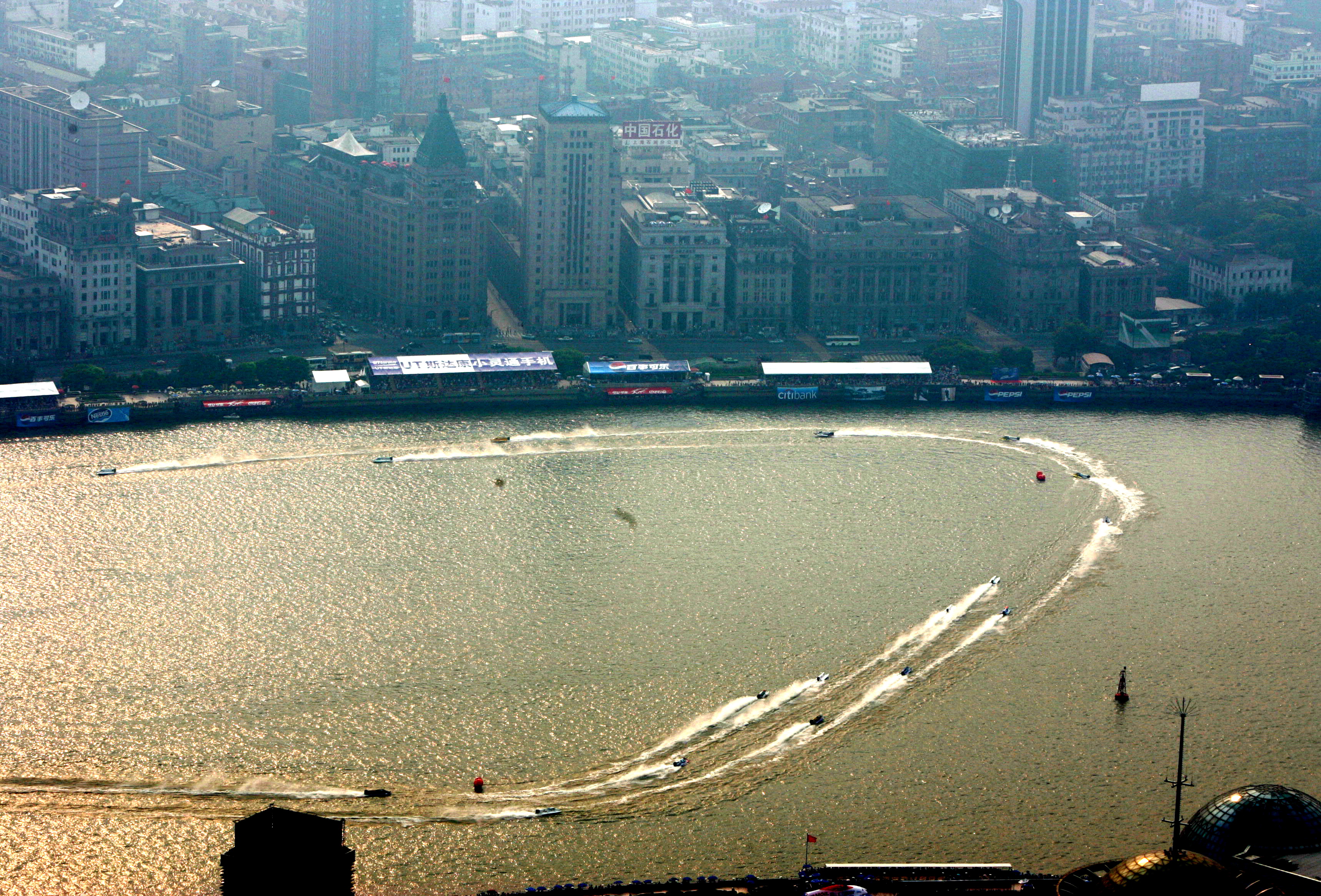 2004年7月31日到8月1日,上海黃浦江外灘段首次為體育賽事封江。這項(xiàng)體育賽事便是F1摩托艇大獎(jiǎng)賽上海站比賽。王杰 攝