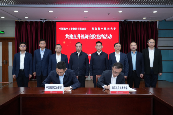 活動上,周新民、甄良、姜斌、中國航空工業集團直升機所總設計師鄧景輝共同為“中國航空工業集團-南京航空航天大學直升機研究院”揭牌。在周新民、甄良、姜斌等的見證下,錢雪松、副校長徐正揚分別代表中國航空工業集團和學校,簽署“中國航空工業集團-南京航空航天大學直升機研究院”共建協議。