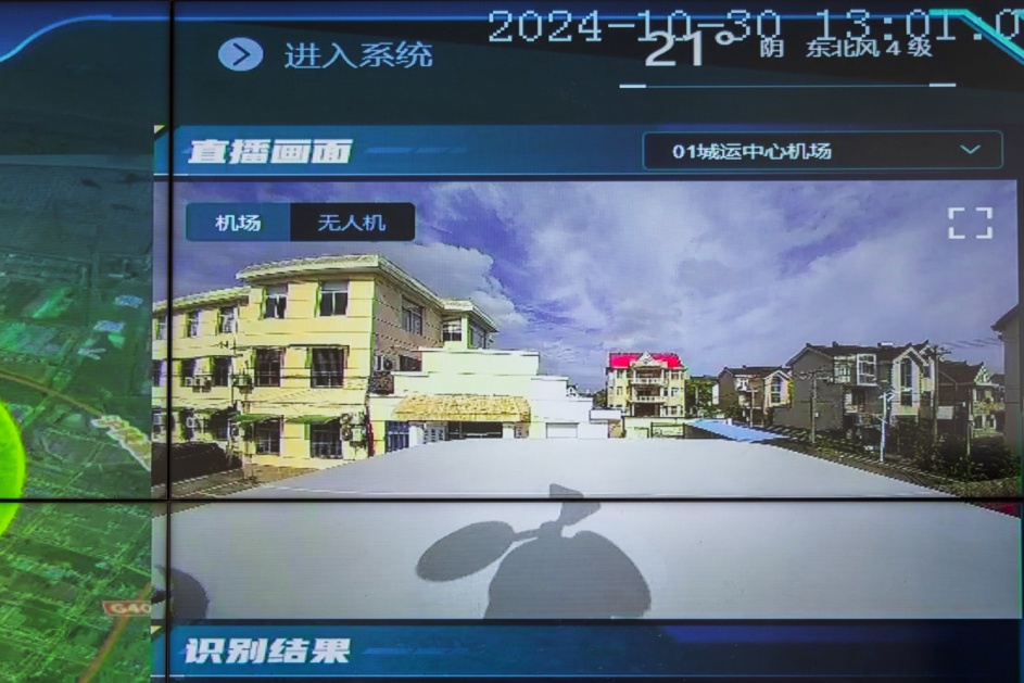 7公里之外的中興鎮城市運行管理中心內,大屏幕上實時顯示著這架無人機拍攝的畫面。9點02分,大屏上彈出紅框,無人機在空中發現垃圾違規堆放,具體位置信息同步顯示在大屏。之后,無人機又在北沿支路旁的小河道上發現水面有漂浮物。