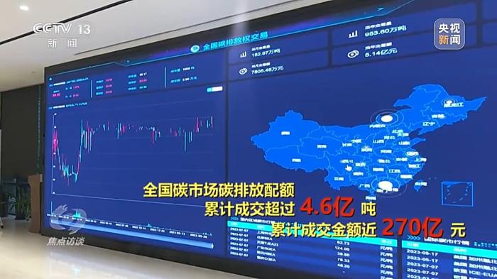 正是通過這樣的方式,碳排放權交易市場交易機制有效地推動了企業減少碳排放。截至7月15日,全國碳市場碳排放配額累計成交超過4.6億噸,累計成交金額近270億元。