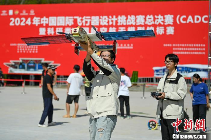 10月14日,四川巴中,賽場上參賽選手正放飛參賽飛機。當日,2024年中國國際飛行器設計挑戰賽總決賽暨科研類全國航空航天模型錦標賽比賽在四川省巴中市拉開序幕,參賽選手將在賽場上一決高下。中國國際飛行器設計挑戰賽是目前中國唯一集飛行器設計、制造、飛行與控制于一體的面向全國高校和高中學生的賽事。中新社記者 劉忠俊 攝