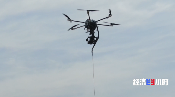 在延慶,一家企業生產的系留無人機通過一根光電線纜與地面連接,在空中停留時可以搭配掛載信號基站、攝像頭等設備,既能定點監控、通信中繼,還能應急救援、高空作業。