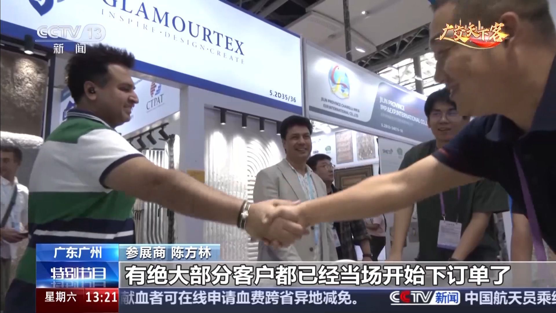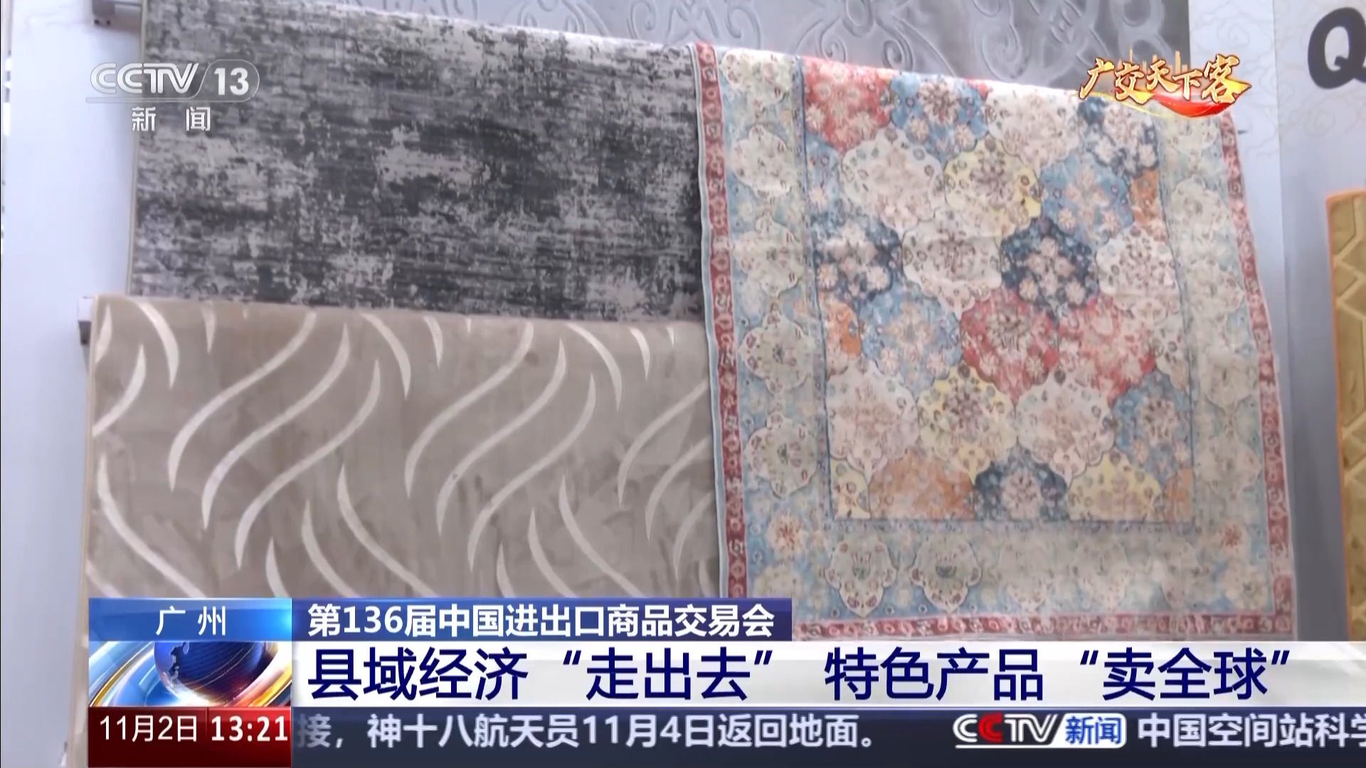 總臺記者 劉潤澤:我現在位于廣交會展館的A區,在現場看到,這里仿佛成了地毯的海洋,吸引著來自世界各地的客商。這款地毯的樣式,采用了最新的“熱轉印”的制作技藝,從最初每人每天只能織3平方米,到現在半自動化產業作業,平均5秒鐘印出一張3平方米的地毯。