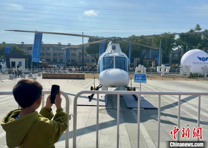 11月23日至25日,首屆中國(紹興)低空經濟展覽會在浙江省紹興市越城區舉行,展會面積約2萬平方米,500余架(臺)不同類型的航空器吸引民眾。圖為小朋友拍攝記錄直升機。中新社記者 項菁 攝