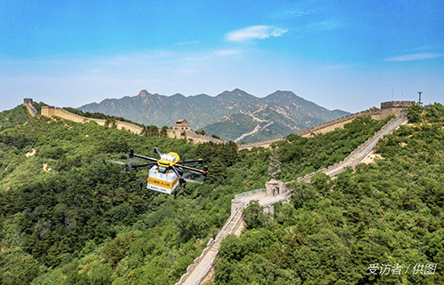 近期,美團(tuán)在北京延慶八達(dá)嶺長城開通了首條無人機(jī)配送航線。無人機(jī)可幫助降落點(diǎn)附近游客購買并運(yùn)送急需的防曬傘、降溫貼等防暑降溫物資。每天營運(yùn)時(shí)間結(jié)束后,無人機(jī)會(huì)協(xié)助景區(qū)運(yùn)維人員將附近廢棄物運(yùn)送至指定回收位置,緩解酷暑下工作人員的日常運(yùn)輸壓力。