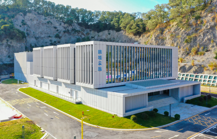圖為首個全面自主可控的E級智能算力平臺“鵬城云腦”網(wǎng)絡(luò)智能重大科技基礎(chǔ)設(shè)施外景圖。(鵬城實(shí)驗(yàn)室供圖)