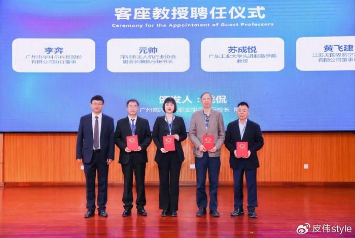廣東工業大學先進制造學院蘇成悅教授、深圳市無人機行業協會副會長兼執行秘書長元帥女士等4人受聘廣州南洋理工職業學院客座教授。