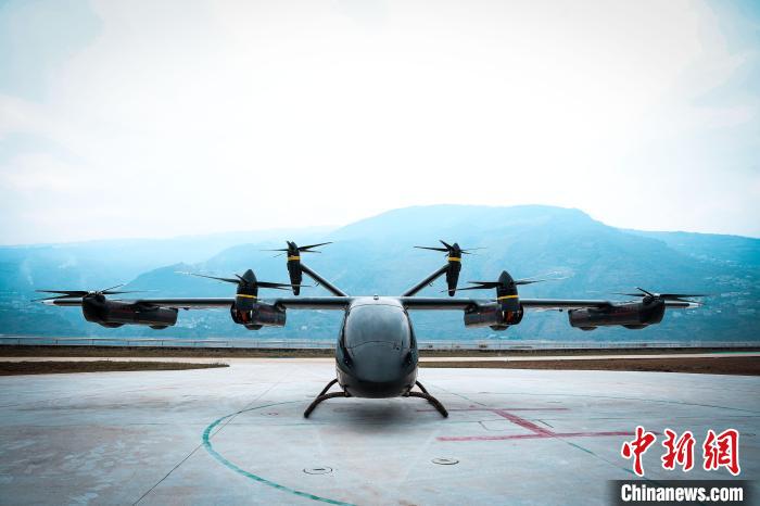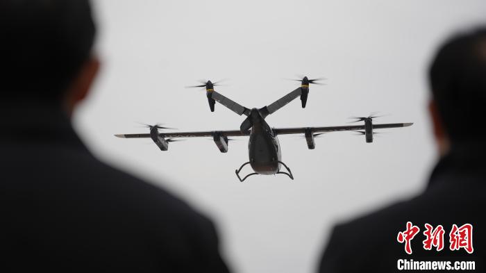 2023年12月29日,沃飛長空AE200型號電動垂直起降飛行器(eVTOL)適航技術驗證機首飛,圖為該驗證機正面。(沃飛長空供圖)