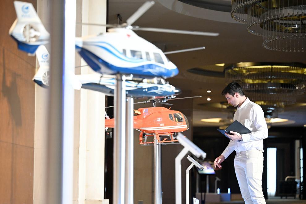 10月15日,與會(huì)嘉賓在論壇會(huì)場(chǎng)外參觀直升機(jī)模型展示。新華社記者 趙子碩 攝直升機(jī)是低空經(jīng)濟(jì)的重要組成部分。中國(guó)飛龍通用航空有限公司總經(jīng)理龔全表示,該公司旗下?lián)碛?3架直升機(jī),持續(xù)拓展應(yīng)急救援、飛行員培訓(xùn)等諸多低空經(jīng)濟(jì)場(chǎng)景。龔全認(rèn)為,近年來(lái)中國(guó)國(guó)產(chǎn)直升機(jī)在不同應(yīng)用場(chǎng)景下均展現(xiàn)出了良好的可靠性,將在低空經(jīng)濟(jì)中扮演重要角色。