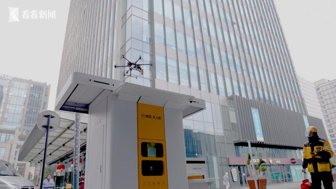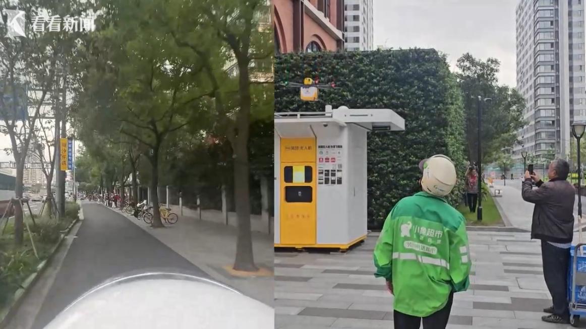 在楊浦區一家商場頂樓的露臺上,十幾架無人機“外賣員”整裝待發。