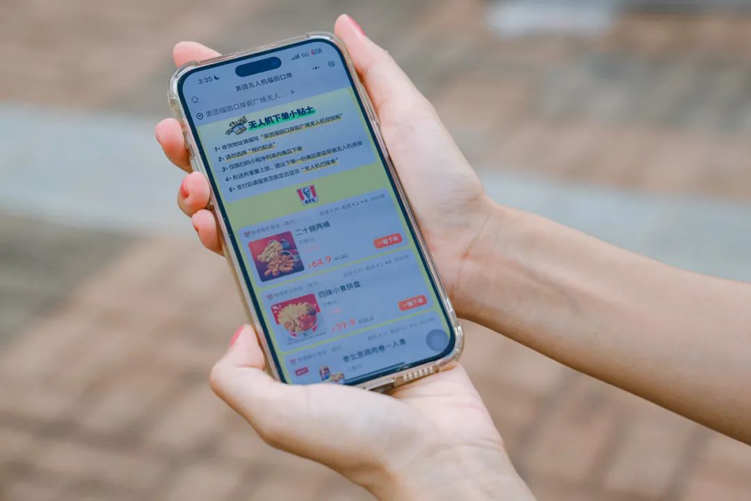 美團無人機與微信港幣錢包(WeChat Pay HK) 攜手合作,航線支持異地下單及港幣支付的模式,從香港北上路途中,還沒到深圳就可修改收貨地址,先人一步點空投外賣,記得外賣地址認準“美團福田口岸前廣場無人機空投柜”喔。
